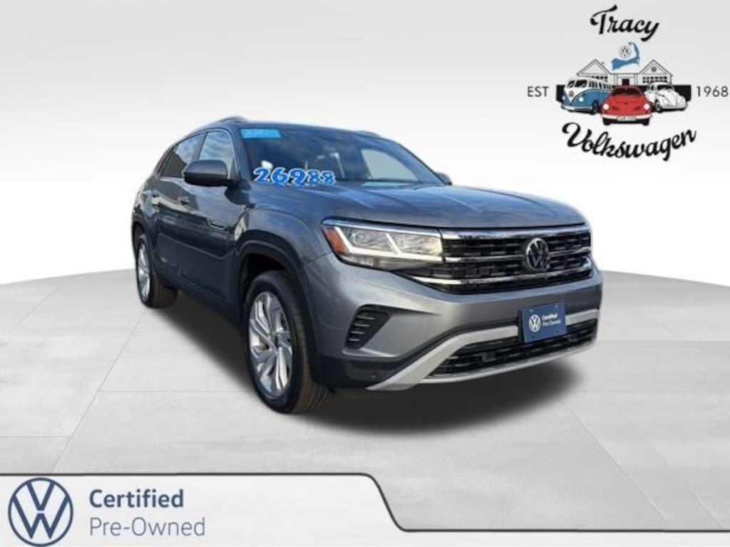 Tracy Volkswagen, Inc. Is proud to present you with another True Market Priced Pre-Owned Vehicle. This 2020 Volkswagen Atlas Cross Sport 2.0T SEL 4Motion Volkswagen Certified Pre-Owned is loaded with the following Factory Options: Volkswagen Certified Pre-Owned Certified, 3.60 Axle Ratio, 4-Wheel Disc Brakes, 6 Speakers, ABS brakes, Active Blind Spot Monitor, Air Conditioning, Alloy wheels, AM/FM radio: SiriusXM, Auto High-beam Headlights, Auto-dimming Rear-View mirror, Automatic temperature control, Brake assist, Bumpers: body-color, Compass, Delay-off headlights, Driver door bin, Driver vanity mirror, Dual front impact airbags, Dual front side impact airbags, Electronic Stability Control, Emergency communication system: VW Car-Net services (capabilities require enrollment or subscription), Exterior Parking Camera Rear, Four wheel independent suspension, Front anti-roll bar, Front Bucket Seats, Front Center Armrest, Front dual zone A/C, Front fog lights, Front reading lights, Fully automatic headlights, Heated Comfort Front Bucket Seats, Heated door mirrors, Heated front seats, Heated steering wheel, Heavy Duty Trunk Liner w/VW CarGo Blocks, Illuminated entry, Leather Shift Knob, Low tire pressure warning, Memory seat, Navigation System, Occupant sensing airbag, Outside temperature display, Overhead airbag, Overhead console, Panic alarm, Passenger door bin, Passenger vanity mirror, Power door mirrors, Power driver seat, Power Liftgate, Power moonroof, Power passenger seat, Power steering, Power windows, Radio data system, Radio: Discover Media w/8.0" Touchscreen Nav, Rain sensing wipers, Rear anti-roll bar, Rear reading lights, Rear seat center armrest, Rear window defroster, Rear window wiper, Remote CD player, Remote keyless entry, Roadside Assistance Kit, Roof rack: rails only, Rubber Mats Kit, Security system, Speed control, Speed-sensing steering, Split folding rear seat, Spoiler, Standard Suspension, Steering wheel mounted audio controls, Tachometer, Telescoping steering wheel, Tilt steering wheel, Traction control, Trip computer, Turn signal indicator mirrors, V-Tex Leatherette Seating Surfaces, Variably intermittent wipers, VW App-Connect (w/Apple CarPlay, Android Auto & MirrorLink), VW Care, and Wheels: 20" 5-Spoke Silver Alloy (V71)!!
