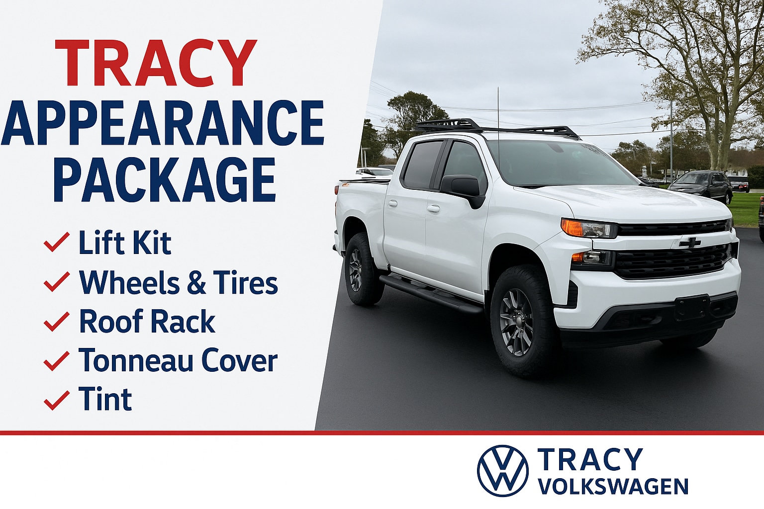 Start with the truck you want, then build it your way at Tracy Volkswagen-your destination for custom truck accessories and expert installation.If you don't see the truck you want in stock, we will do our best to find it for you!
