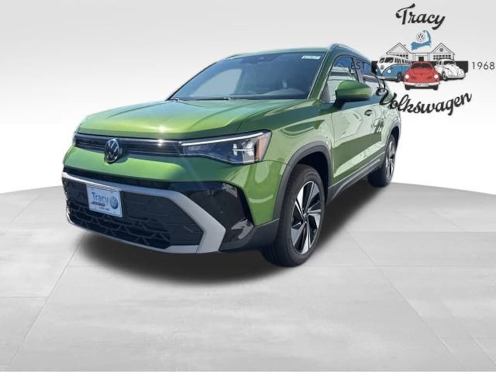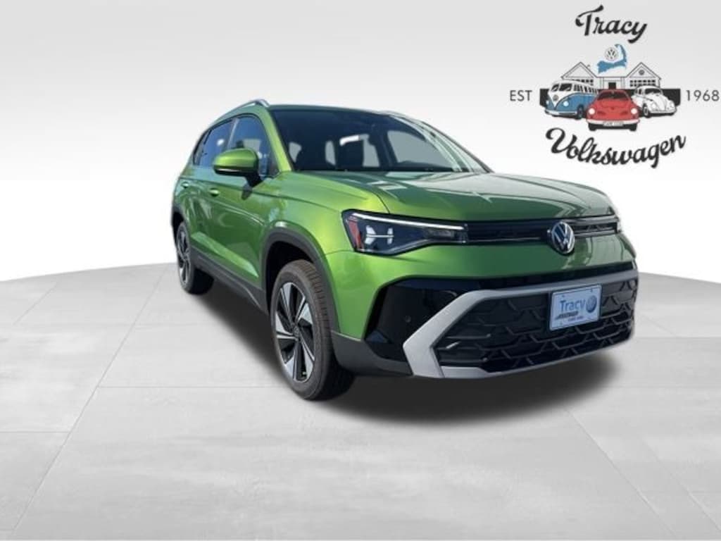 Tracy Volkswagen, Inc. Is proud to present you with another True Market Priced Vehicle. This 2025 Volkswagen Taos 1.5T SE is loaded with the following Factory Options: 4-Wheel Disc Brakes, 6 Speakers, ABS brakes, Active Blind Spot Monitor, Air Conditioning, Alloy wheels, AM/FM radio: SiriusXM with 360L, Auto High-beam Headlights, Automatic temperature control, Brake assist, Bumpers: body-color, CloudTex & Cloth Seating Surfaces, Compass, Delay-off headlights, Driver door bin, Driver vanity mirror, Dual front impact airbags, Dual front side impact airbags, Electronic Stability Control, Emergency communication system: VW Car-Net Safe & Secure 5-year, Exterior Parking Camera Rear, Four wheel independent suspension, Front anti-roll bar, Front Bucket Seats, Front Center Armrest, Front dual zone A/C, Front reading lights, Front Strut Rear Multi-Link Suspension, Fully automatic headlights, Heated door mirrors, Heated Front Bucket Seats, Heated front seats, Heated steering wheel, Illuminated entry, Leather Shift Knob, Low tire pressure warning, Occupant sensing airbag, Outside temperature display, Overhead airbag, Overhead console, Panic alarm, Passenger door bin, Passenger vanity mirror, Power door mirrors, Power driver seat, Power steering, Power windows, Radio data system, Radio: MIB3 Composition Media AM/FM/HD, Rain sensing wipers, Rear anti-roll bar, Rear seat center armrest, Rear window defroster, Rear window wiper, Remote keyless entry, Security system, Speed control, Speed-sensing steering, Split folding rear seat, Spoiler, Steering wheel mounted audio controls, Tachometer, Telescoping steering wheel, Tilt steering wheel, Traction control, Trip computer, Variably intermittent wipers, and Wheels: 18" 2-Tone Machined Alloy!!