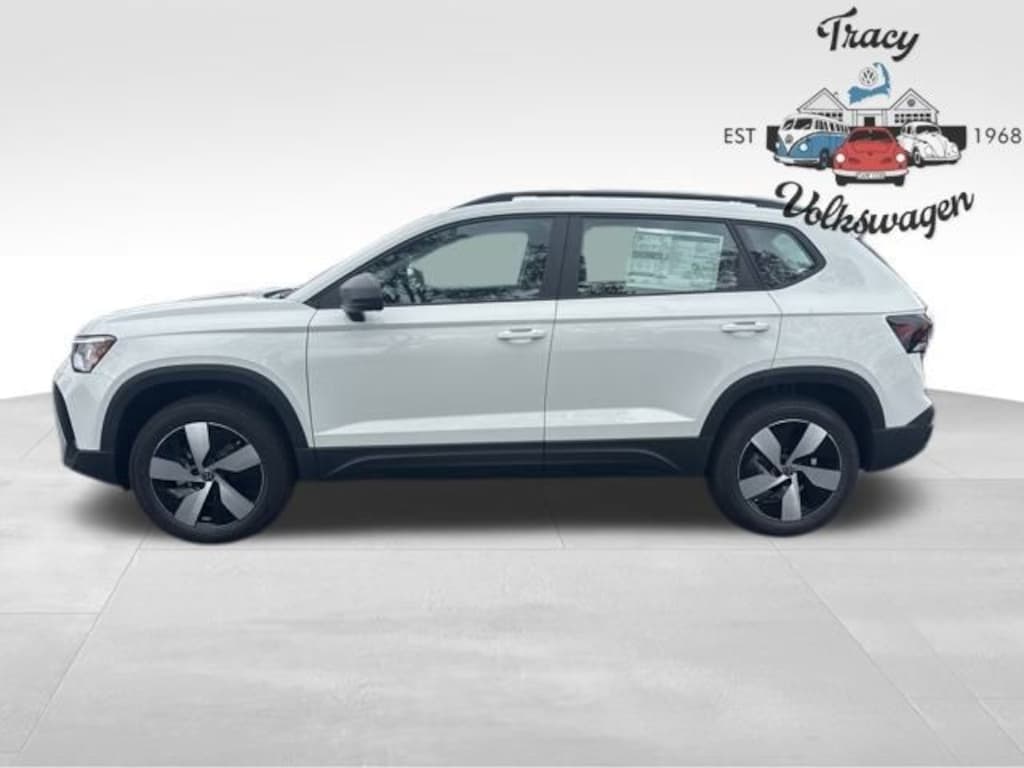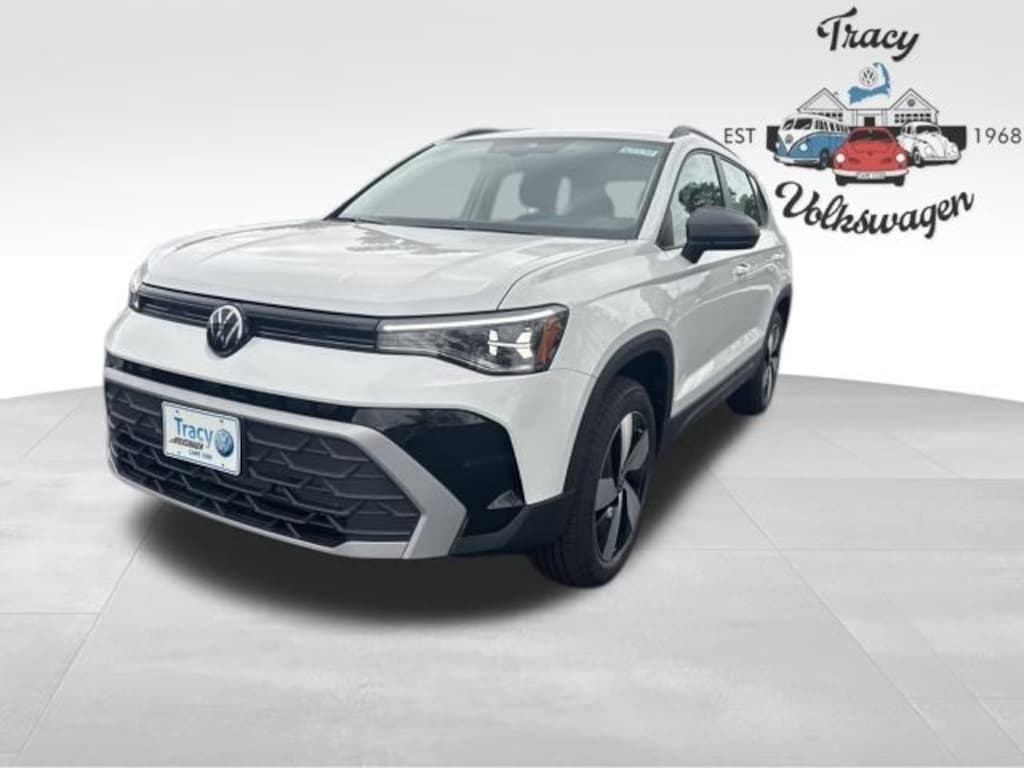 Tracy Volkswagen, Inc. Is proud to present you with another True Market Priced Vehicle. This 2025 Volkswagen Taos 1.5T S is loaded with the following Factory Options: 4-Wheel Disc Brakes, 6 Speakers, ABS brakes, Active Blind Spot Monitor, Air Conditioning, Alloy wheels, AM/FM radio, Auto High-beam Headlights, Brake assist, Bumpers: body-color, Cloth Seating Surfaces, Compass, Delay-off headlights, Driver door bin, Driver vanity mirror, Dual front impact airbags, Dual front side impact airbags, Electronic Stability Control, Emergency communication system: VW Car-Net Safe & Secure 5-year, Exterior Parking Camera Rear, Four wheel independent suspension, Front anti-roll bar, Front Bucket Seats, Front Center Armrest, Front reading lights, Front Strut Rear Multi-Link Suspension, Fully automatic headlights, Heated door mirrors, Heated Front Bucket Seats, Heated front seats, Heated steering wheel, Illuminated entry, Leather Shift Knob, Low tire pressure warning, Occupant sensing airbag, Outside temperature display, Overhead airbag, Overhead console, Panic alarm, Passenger door bin, Passenger vanity mirror, Power door mirrors, Power steering, Power windows, Radio data system, Radio: MIB3 Composition Color AM/FM, Rain sensing wipers, Rear anti-roll bar, Rear seat center armrest, Rear window defroster, Rear window wiper, Remote keyless entry, Speed control, Speed-sensing steering, Split folding rear seat, Spoiler, Steering wheel mounted audio controls, Tachometer, Telescoping steering wheel, Tilt steering wheel, Traction control, Trip computer, Variably intermittent wipers, and Wheels: 18" 2-Tone Machined Alloy!!