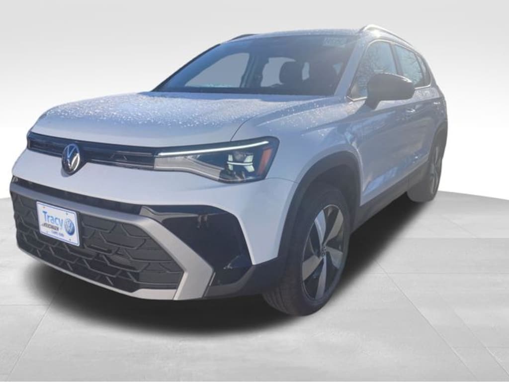 Tracy Volkswagen, Inc. Is proud to present you with another True Market Priced Vehicle. This 2026 Volkswagen Taos 1.5T S is loaded with the following Factory Options: 4-Wheel Disc Brakes, 6 Speakers, ABS brakes, Active Blind Spot Monitor, Air Conditioning, Alloy wheels, AM/FM radio, Auto High-beam Headlights, Brake assist, Bumpers: body-color, Cloth Seating Surfaces, Compass, Delay-off headlights, Driver door bin, Driver vanity mirror, Dual front impact airbags, Dual front side impact airbags, Electronic Stability Control, Emergency communication system: VW Car-Net Safe & Secure 5-year, Exterior Parking Camera Rear, Four wheel independent suspension, Front anti-roll bar, Front Bucket Seats, Front Center Armrest, Front reading lights, Front Strut Rear Multi-Link Suspension, Fully automatic headlights, Heated door mirrors, Heated Front Bucket Seats, Heated front seats, Heated steering wheel, Illuminated entry, Leather Shift Knob, Low tire pressure warning, Occupant sensing airbag, Outside temperature display, Overhead airbag, Overhead console, Panic alarm, Passenger door bin, Passenger vanity mirror, Power door mirrors, Power steering, Power windows, Radio data system, Radio: MIB3 Composition Color AM/FM, Rain sensing wipers, Rear anti-roll bar, Rear seat center armrest, Rear window defroster, Rear window wiper, Remote keyless entry, Speed control, Speed-sensing steering, Split folding rear seat, Spoiler, Steering wheel mounted audio controls, Tachometer, Telescoping steering wheel, Tilt steering wheel, Traction control, Trip computer, Variably intermittent wipers, and Wheels: 18" 2-Tone Machined Alloy!!