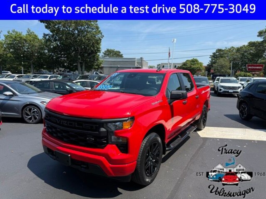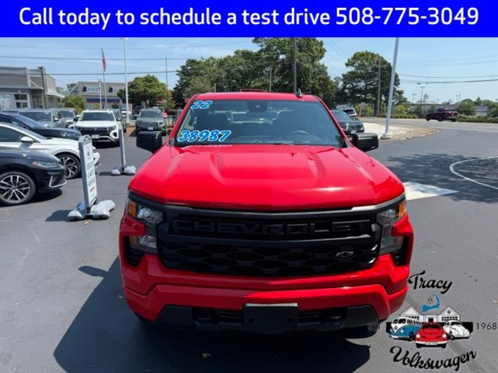 Tracy Volkswagen, Inc. Is proud to present you with another True Market Priced Pre-Owned Vehicle. This 2022 Chevrolet Silverado 1500 Custom is loaded with the following Factory Options: 8-Speed Automatic, 4WD, and Jet Black w/Cloth Seat Trim Custom Convenience Package (Electric Rear-Window Defogger, EZ Lift Power Lock & Release Tailgate, LED Cargo Area Lighting, and Remote Vehicle Starter System), Custom Value Package, High Capacity Suspension Package, Preferred Equipment Group 1CX (10-Way Power Driver Seat w/Lumbar, 120-Volt Bed Mounted Power Outlet, 120-Volt Instrument Panel Power Outlet, 3.5" Monochromatic Display Driver Info Center, Bluetooth® For Phone, Chevrolet Connected Access Capable, Color-Keyed Carpeting Floor Covering, Compass, Deep-Tinted Glass, Dual Rear USB Ports (Charge Only), Electrical Steering Column Lock, Electronic Cruise Control, Front Frame-Mounted Black Recovery Hooks, Front Rubberized Vinyl Floor Mats, HD Rear Vision Camera, Manual Tilt Wheel Steering Column, OnStar & Chevrolet Connected Services Capable, Power Front Windows w/Driver Express Up/Down, Power Front Windows w/Passenger Express Down, Power Rear Windows w/Express Down, Rear 60/40 Folding Bench Seat (Folds Up), Rear Rubberized-Vinyl Floor Mats, Remote Keyless Entry, SiriusXM Radio, Standard Tailgate, Theft Deterrent System (Unauthorized Entry), Wi-Fi Hot Spot Capable, and Wireless Phone Projection), Trailering Package (Hitch Guidance), 8-Speed Automatic, 4WD, Jet Black w/Cloth Seat Trim, 3.42 Rear Axle Ratio, 4-Wheel Disc Brakes, 40/20/40 Front Split-Bench Seat, 6 Speakers, 6-Speaker Audio System, ABS brakes, Air Conditioning, Alloy wheels, AM/FM radio: SiriusXM, Apple CarPlay/Android Auto, Auto High-beam Headlights, Auto-Locking Rear Differential, Automatic Emergency Braking, Brake assist, Bumpers: body-color, Cloth Seat Trim, Delay-off headlights, Driver door bin, Driver vanity mirror, Dual front impact airbags, Dual front side impact airbags, Electronic Stability Control, Following Distance Indicator, Forward Collision Alert, Front anti-roll bar, Front Black Bowtie Emblem (LPO), Front Center Armrest w/Storage, Front License Plate Kit, Front Pedestrian Braking, Front reading lights, Front wheel independent suspension, Fully automatic headlights, Heated door mirrors, Illuminated entry, IntelliBeam Automatic High Beam On/Off, Lane Keep Assist w/Lane Departure Warning, Low tire pressure warning, Not Equipped w/Hood Insulator, Not Equipped w/Rear USB Ports, Not Equipped w/Steering Column Lock, Occupant sensing airbag, Outside temperature display, Overhead airbag, Overhead console, Panic alarm, Passenger door bin, Passenger vanity mirror, Power door mirrors, Power driver seat, Power steering, Power windows, Premium audio system: Chevrolet Infotainment 3, Radio data system, Radio: Chevrolet Infotainment 3 System, Rear reading lights, Rear step bumper, Rear window defroster, Remote keyless entry, Security syst