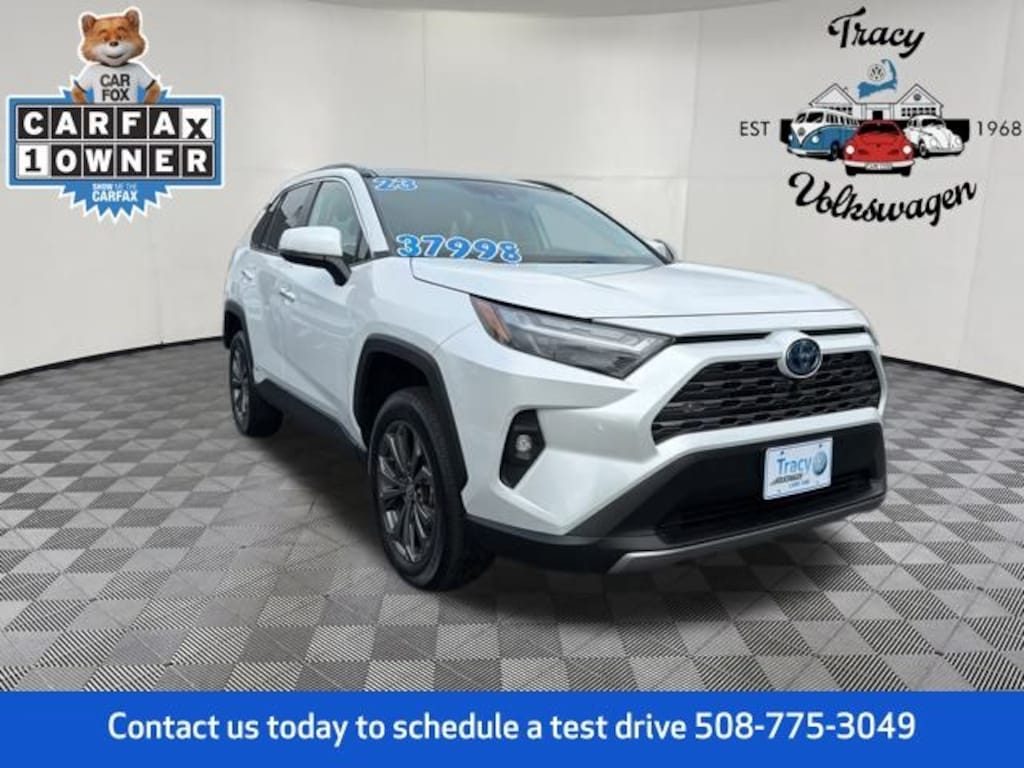 Tracy Volkswagen, Inc. Is proud to present you with another True Market Priced Pre-Owned Vehicle. This 2023 Toyota RAV4 Hybrid Limited is loaded with the following Factory Options: 2.5L 4-Cylinder 2.5L 4-Cylinder, 11 Speakers, 4-Wheel Disc Brakes, ABS brakes, Air Conditioning, Alloy wheels, AM/FM radio: SiriusXM, Auto High-beam Headlights, Auto-dimming Rear-View mirror, Automatic temperature control, Axle Ratio: TBD, Brake assist, Bumpers: body-color, Delay-off headlights, Driver door bin, Driver vanity mirror, Dual front impact airbags, Dual front side impact airbags, Electronic Stability Control, Emergency communication system: Safety Connect (1-year trial), Four wheel independent suspension, Front anti-roll bar, Front Bucket Seats, Front Center Armrest, Front dual zone A/C, Front fog lights, Front reading lights, Fully automatic headlights, Garage door transmitter: HomeLink, Heated door mirrors, Heated front seats, Heated/Ventilated Front Bucket Seats, Illuminated entry, JBL Audio System, Knee airbag, Lane Departure Warning System, Leather Shift Knob, Low tire pressure warning, Memory seat, Occupant sensing airbag, Outside temperature display, Overhead airbag, Overhead console, Panic alarm, Passenger door bin, Passenger vanity mirror, Power door mirrors, Power driver seat, Power Liftgate, Power moonroof, Power steering, Power windows, Radio data system, Rear anti-roll bar, Rear seat center armrest, Rear window defroster, Rear window wiper, Remote keyless entry, Security system, SofTex Seat Trim, Speed control, Speed-sensing steering, Split folding rear seat, Spoiler, Steering wheel mounted audio controls, Telescoping steering wheel, Tilt steering wheel, Traction control, Trip computer, Turn signal indicator mirrors, Variably intermittent wipers, Ventilated front seats, and Wheels: 18" x 7.0J Silver Aluminum Alloy!!