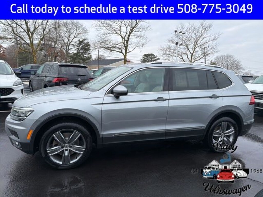 Tracy Volkswagen, Inc. Is proud to present you with another True Market Priced Pre-Owned Vehicle. This 2019 Volkswagen Tiguan 2.0T SEL Premium 4Motion is loaded with the following Factory Options: AWD AWD, 2-Row Rubber Mats Kit, 3.33 Axle Ratio, 4-Wheel Disc Brakes, 4-Wheel Independent Suspension, 8 Speakers, ABS brakes, Active Blind Spot Monitor, Air Conditioning, Alloy wheels, AM/FM radio: SiriusXM, Auto High-beam Headlights, Auto-dimming Rear-View mirror, Automatic temperature control, Brake assist, Bumperdillo Protection Plate for Rear Bumper, Bumpers: body-color, Compass, Delay-off headlights, Driver door bin, Driver vanity mirror, Dual front impact airbags, Dual front side impact airbags, Electronic Stability Control, Emergency communication system: VW Car-Net services (capabilities require enrollment or subscription), First Aid Kit, Forward collision: FCW w/Autonomous Emergency Braking mitigation, Four wheel independent suspension, Frameless Auto-Dimming Rearview Mirror, Front anti-roll bar, Front Bucket Seats, Front Center Armrest, Front dual zone A/C, Front fog lights, Front reading lights, Fully automatic headlights, Heated door mirrors, Heated Front Comfort Sport Seats, Heated front seats, Heated steering wheel, Heavy Duty Trunk Liner w/VW CarGo Blocks, Illuminated entry, Leather Shift Knob, Low tire pressure warning, Memory seat, Navigation System, Occupant sensing airbag, Outside temperature display, Overhead airbag, Overhead console, Panic alarm, Passenger door bin, Passenger vanity mirror, Power door mirrors, Power driver seat, Power Liftgate, Power moonroof, Power steering, Power windows, Radio data system, Radio: Discover Media AM/FM/HD, Rain sensing wipers, Rear anti-roll bar, Rear reading lights, Rear seat center armrest, Rear window defroster, Rear window wiper, Remote CD player, Remote keyless entry, Roadside Assistance Kit, Roof rack: rails only, Security system, Speed control, Speed-sensing steering, Split folding rear seat, Spoiler, Steering wheel mounted audio controls, Tachometer, Telescoping steering wheel, Tilt steering wheel, Traction control, Trip computer, Turn signal indicator mirrors, Variably intermittent wipers, Vienna Leather Seating Surfaces, VW Care, and Wheels: 19" 5-Spoke Gray Alloy!!